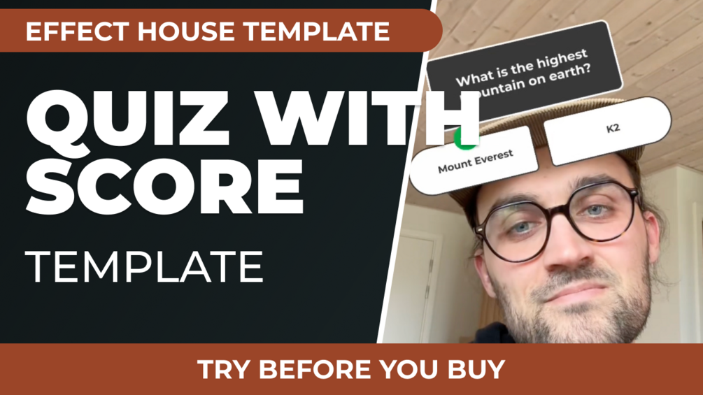 Create your own interactive Quiz with Score using this easy-to-customize Effect House Template! Engage your audience with fun trivia, personality tests, or brand-related quizzes—all while keeping track of their scores in real time.